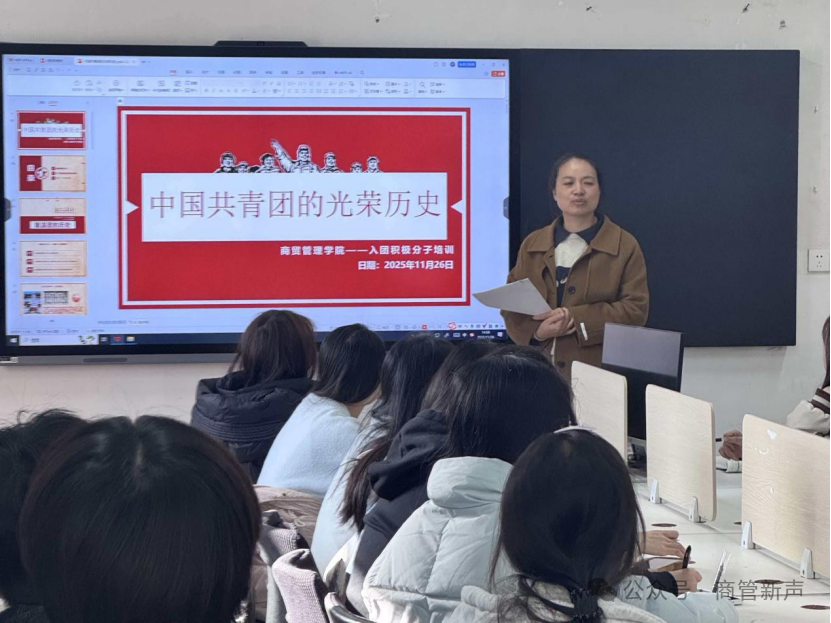 为加强共青团组织建设,严把团员“入口关”,商贸管理学院于2025年11月24日至27日举办了为期4天的入团积极分子培训班。来自全院各专业的30名优秀青年学子,在严格而充实的培训中接受思想洗礼,扣好了加入团组织的第一粒扣子。 本次培训紧扣新时代共青团工作要求,精心设置了四大理论课程,构建立体化知识体系。从中国共青团的性质与任务,阐释了共青团作为党的忠实助手和可靠后备军的根本定位。进一步走进共青团,清晰解读了团章团规、组织生活和团员发展的全过程。学员们在中国共青团的光荣历史的讲述中,沿着时间脉络,感受百年青春征程的波澜壮阔与薪火相传。而在中国共青团和中国共产党这一核心课程中,则深刻剖析了党团特殊的政治关系与血脉联系。 本次培训的根本目的在于引导入团积极分子提升思想政治觉悟,端正入团动机。是牢固树立共产主义远大理想和中国特色社会主义共同理想,是在思想上、政治上、行动上增强“四个意识”、坚定“四个自信”、做到“两个维护”的自觉锤炼,更是综合素质的全面提升。随着30名入团积极分子完成全部培训理论课程,本次集中培训画上圆满句号。青年学子们在这里寻获方向、坚定理想,他们将带着更加明确的目标和更加扎实的步伐,在实现民族复兴的伟大征程中奋力奔跑,而他们的培养与考察将进入更为关键的日常阶段。 本期培训班的成功举办,为学院共青团注入了新鲜血液,也为进一步做好新时代青年思想引领工作奠定了坚实基础。学院团委将继续完善培养机制,为党培育更多后备力量,团结带领广大青年学子在实现民族复兴的赛道上奋勇争先,让青春在全面建设社会主义现代化国家的火热实践中,绽放出最绚丽的花朵。