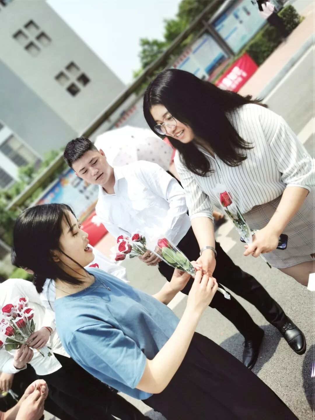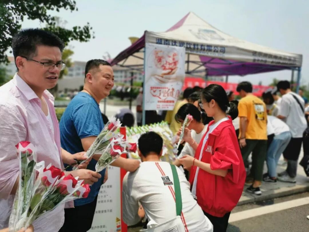 信息工程学院周新丰副院长、杨峥书记、王汗令老师亲自给同学们送玫瑰、送祝福。